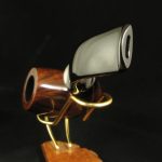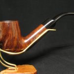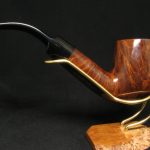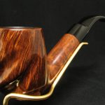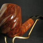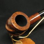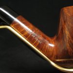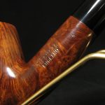 Una pipa accattivante e unica, grande e capiente, meticolosamente progettata dall’ex artigiano Charatan, Barry Jones, per la stimata James Upshall Pipe Company. Questa eccezionale creazione combina perfettamente radica di alta qualità con una grana affascinante, abilmente scolpita in una forma seducente. La nostra stima colloca questa pipa tra il 1984 e il 1996, come evidenziato dall’assenza di un logo sul bocchino, accanto a una designazione della taglia sulla pipa, con la stampigliatura che sembra essere pantografata.