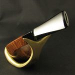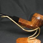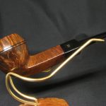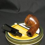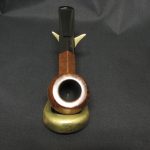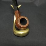 Today, we present the traditional English bulldog from Bewley. It’s not easy to tell which supplier made this pipe, but the carver was clearly a talented and skilled craftsman: look at how he emphasized the straight grain below and above the slot on the bowl.