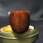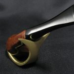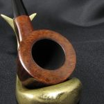 The previous owner of the pipe wasn’t very careful with pipe: the right side of the shank (from the smokers perspective) got an external burn (in an ashtray?); the damaged area is concaved in and got some scratches. We have fixed this area additionally with a strong super glue to ensure the maximal reliability. Also we had to patch a few small dents on the bowl. Despite these cosmetic issuess the pipe is absolutely OK technically, full of life and ready to be smoked many and many years.
