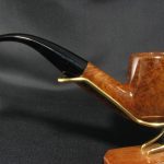 A heavy, capacious and very moderately smoked Charatan’s Make pipe of their best period (“Lane era”), i.e. 1960s – early 1970s, when the glory of Charatan’s eclipsed all competitors, including Dunhill. Generally the stamping “DC” should reffer to a patented double comfort stem. But this tapered stem fits the spirit and style of the large refined bent pipe so we suspect these standards were not so pedantically followed at the Charatan’s factory.