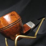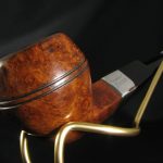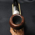 The pipe markings are “”CIVIC” \ LONDON MADE” on the stammel, the collar is marked “”CIVIC””, “SL \ SL”, and the silver hallmarks for London, 1923. The length is 12.7 cm (5″), bowl’s height is 4.3 cm (1.69″). External diameter of the bowl is 3.6 cm (1.42″), internal diameter is 1.8 cm (0.71″). The depth is 3.3 cm (1.3″) and this pipe weights 31 gr. Briar, vulcanite stem, no filter. It seems London jewelers were rather sparing at that times: the collar is very thin and one of its edges has got erased through over 95 years. We have stabilized it with a superglue, but unfortunatelly, it’s hardly possible to do more.