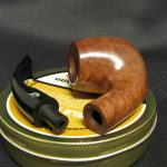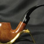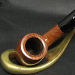 The pipe markings are “Davidoff”, “409”. The length is 11.8 cm (4.64″) and the bowl’s height is 4.8 cm (1.89″). External diameter of the bowl is 3.8 cm (1.5″), internal diameter is 2.0 cm (0.79″). The depth is 4.0 cm (1.57″) and this pipe weighs 44 gr. Briar, acrylic stem, no filter. The pipe was lightly smoked and very well preserved.