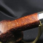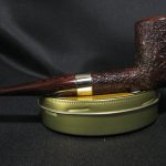 The pipe marking is “6103”, “(dunhill)”, “CUMBERLAND \ MADE IN ENGLAND 39”. The length is 16.0 cm (6.3″), bowl’s height is 5.3 cm (2.09″). External diameter of the bowl is 3.9 cm (1.54″), internal diameter is 2.3 cm (0.9″). The depth is 4.5 cm (1.77″) and this pipe weights 57 gr. Briar, cumberland stem, no filter. We had to fix a crack in the shank and clamp it by the nickel collar for the maximum reliability.