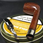 The pipe markings are “SPECIAL GRAIN”. The length is 15.7 cm (6.18″), bowl’s height is 4.6 cm (1.81″). External diameter of the bowl is 3.5 cm (1.38″), internal diameter is 1.9 cm (0.75″). The depth is 3.9 cm (1.54″) and this pipe weights 37 gr. Briar, vulcanite stem, aluminium air cooler. The shank had a couple neat cracks which were carefully fixed and clumped by a collar for the maximal reliability.