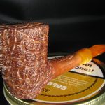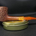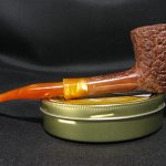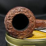 The origin of this pipe isn’t very much clear. Some experts mention Excelsior pipes made in USA and England, but it look rather like an Italian (or Italian American) – nice briar, rich rustication, tasty combination of the “raw” unstained finish (a little bit polished) and bright acrylic shank extension plus stem. Exactly this Excelsior shape is represented at world known pipephil site. The most probably the pipe was born at middle or large manufactory with own shape numbering standards. Great (and still unsmoked!) finding!