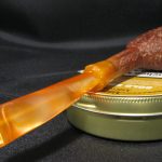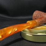 The pipe markings are “EXCELSIOR DE LUXE \ IMPORTED BRIAR”, “904”. The length is 16.3 cm (6.42″), bowl’s height is 5.3 cm (2.09″). External diameter of the bowl is 4.1 cm (1.61″), internal diameter is 2.1 cm (0.83″). The depth is 4.3 cm (1.69″) and this pipe weights 47 gr. Briar, acrylic stem, metallic air cooler.