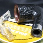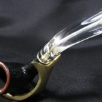 The pipe markings are “Collector”, “(GBD)”, “Prehistoric \ LONDON ENGLAND”, “9571”. The length is 14.0 cm (5.51″), bowl’s height is 6.2 cm (2.44″). External diameter of the bowl is 3.7 cm (1.46″), internal diameter is 2.3 cm (0.9″). The depth is 4.6 cm (1.81″) and this pipe weights 45 gr. Briar, perspex stem, no filter. There was a very small neatcrack on the shank, therefore we banded additionally the shank with a collar. The chamber has a normal smoked wear without any major issues.
