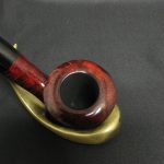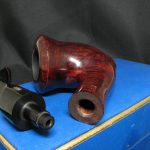 We have thoroughly inspected the pipe and can confidently state that it is unsmoked. There is no odor emanating from the chamber, shank, or stem, no signs of tar, and the bottom of the mortise is completely clear and clean. Although the bowl surface has a few minor scratches and dings, we opted to preserve the pipe’s original finish. As such, we polished the pipe, removed some oxidation on the stem, and coated the bowl with carnauba wax gifted to us by an old and dear friend many years ago. The pipe comes with its original box (which displays significant signs of storage) and an original pipe bag (in excellent condition).