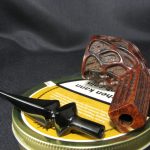 The pipe marking (a bit difficult to read) is “CANBERRA \ LONDON MADE \ MADE IN ENGLAND \ EXPRESSLY FOR POGUES”. The length is 15.4 cm (6.06″), the bowl’s height is 5.1 cm (2.0″). External diameter of the bowl is 4.0 cm (1.57″), internal diameter is 2.1 cm (0.83″). The depth is 3.9 cm (1.54″) and this pipe weights 43 gr. Briar, vulcanite stem, no filter.