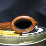 A very interesting Kaywodie pipe from 1950’s. Both the streamliner shape (so much popular at those times) and the technically advanced drilling approach make this sample a really collectable piece of American pipe making history. The drilling is done under the chamber with two drought holes down to bottom of the chamber in order to make the smoking process more comfortable and dry.