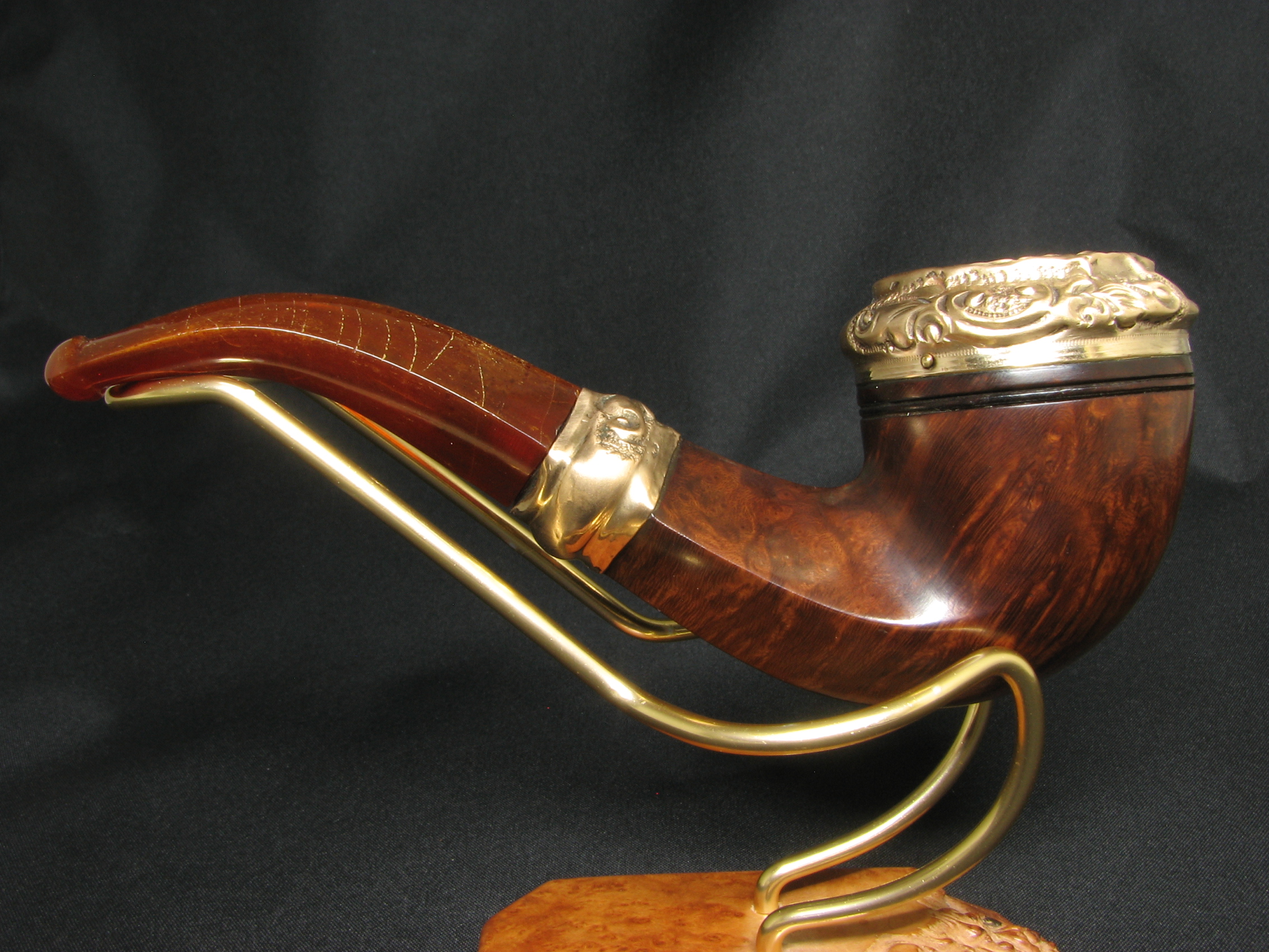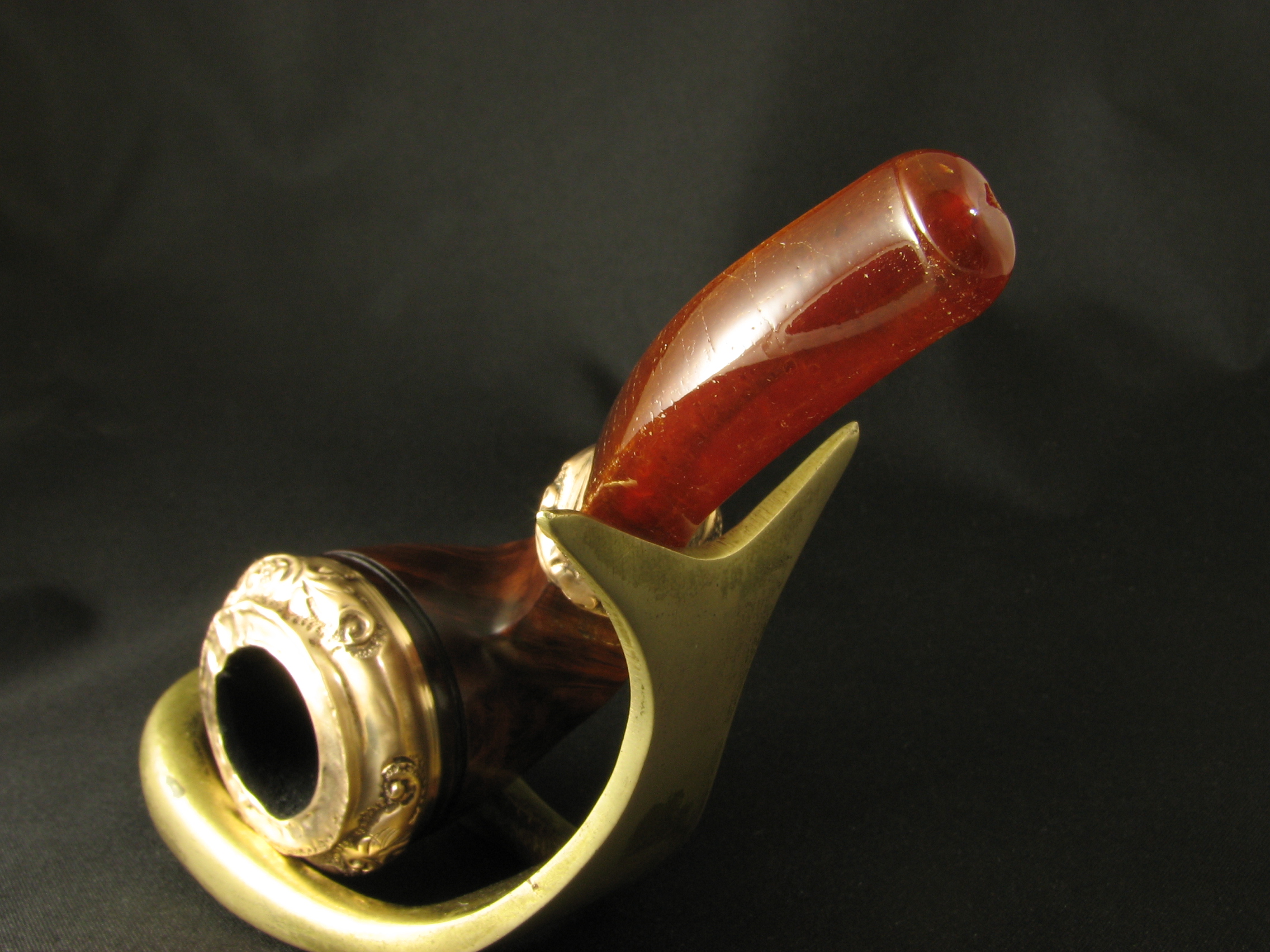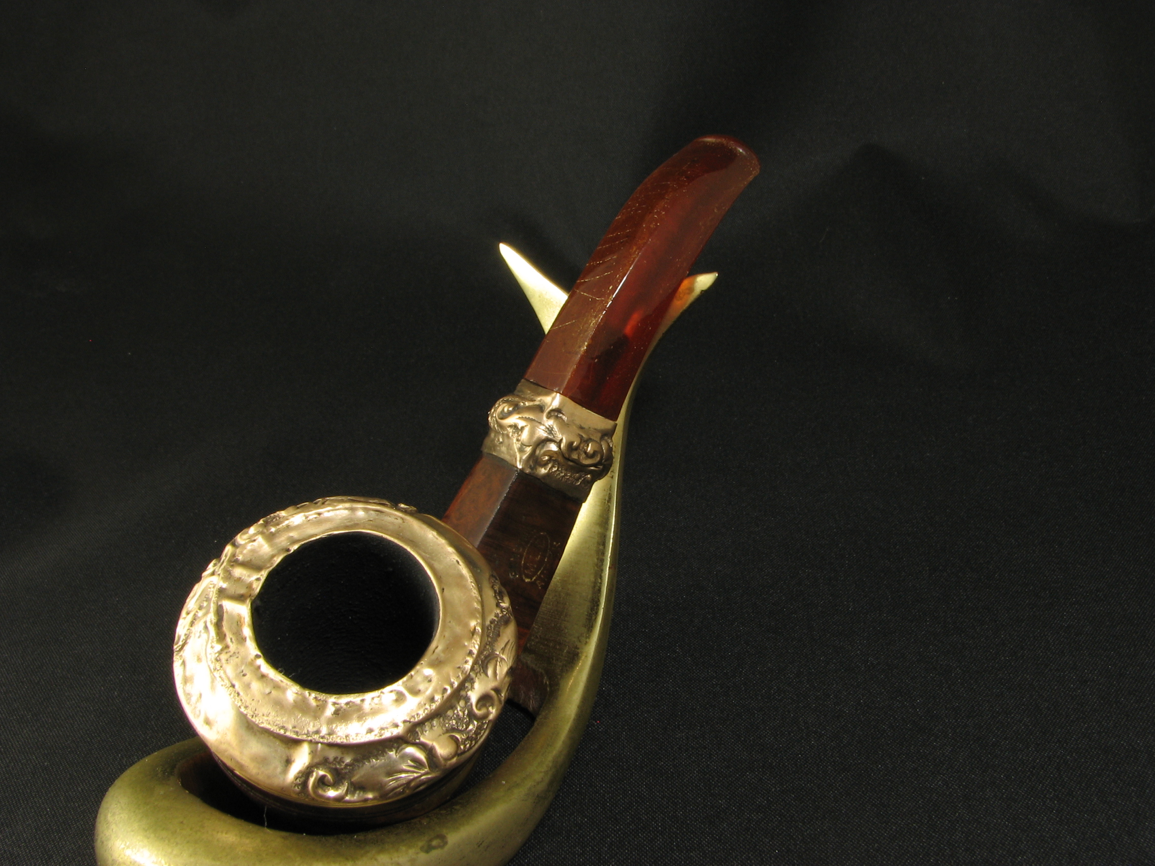 Today, we present an exquisite creation from earlier times—showing none of the utilitarianism and pragmatism typical of later American pipes. Instead, it reveals meticulous craftsmanship in every detail, an exquisite jeweler’s touch, and an amber mouthpiece (the only part not perfectly preserved to this day).