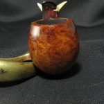 The work with the pipe was a little specific: the material of the stem is not usual ebonite-acryle, but fashionable “artificial amber”, the original “screw” tennon was lost therefore we had to replace it with a more modern one. The pipe markings are “AmbroL \ (M.L.C.)”. The length is 9.7 cm (3.82″), and the bowl’s height is 4.2 cm (1.65″). External diameter of the bowl is 3.7 cm (1.46″), internal diameter is 1.9 cm (0.75″). The depth is 3.1 cm (1.22″) and this pipe weighs 34 gr. Briar, artificial amber stem, no filter. The stem sits not too tough, but reliable enough.