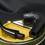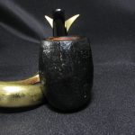 The pipe marking is “MADE IN LONDON \ ENGLAND”. The length is 13.2 cm (5.2″), bowl’s height is 4.5 cm (1.77″). External diameter of the bowl is 3.3 cm (1.3″), internal diameter is 1.7 cm (0.67″). The depth is 3.6 cm (1.42″) and this pipe weights 35 gr. Briar, vulcanite stem, no filter. We had to patch a small chip near the end of the shank – you may note under a bright light.