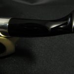 The pipe marking is “Peterson’s \ Sherlock Holmes”, “MADE IN THE \ REPUBLIC\ OF IRELAND”, “PETERSON’S \ STERLING SILVER”. The length is 14.2 cm (5.59″), bowl’s height is 5.6 cm (2.2″). External diameter of the bowl is 4.3 cm (1.69″), internal diameter is 2.0 cm (0.79″). The depth is 4.6 cm (1.81″) and this pipe weights 71 gr. Briar, vulcanite stem, no filter. The hallmark letter is the most probably capital italic F, so the pipe was made in 1991 (or close to this year).