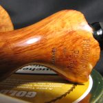 The pipe markings are “PREBEN HOLM \ REGAL \ HAND MADE \ IN \ DENMARK”. The length is 15.3 cm (6.02″), bowl’s height is 6.2 cm (2.44″). External dimesions of the bowl are 5.3 x 5.0 cm (2.09″ x 1.97″), internal diameter is 2.4 cm (0.94″). The depth is 5.3 cm (2.09″) and this pipe weights 83 gr. Briar, vulcanite stem, no filter.