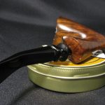 The pipe markings are “STANWELL \ REGD N 969-48 \ de Luxe \ MADE IN DENMARK”. The length is 14.0 cm (5.51″), bowl’s height is 6.1 cm (2.4″). External diameter of the bowl is 4.4 cm (1.73″), internal diameter is 2.1 cm (0.83″). The depth is 4.8 cm (1.89″) and this pipe weights 55 gr. Briar, vulcanite stem (slightly patched, you may identify the track under a bright light), no filter. The chamber has been protected with a break-in coat.