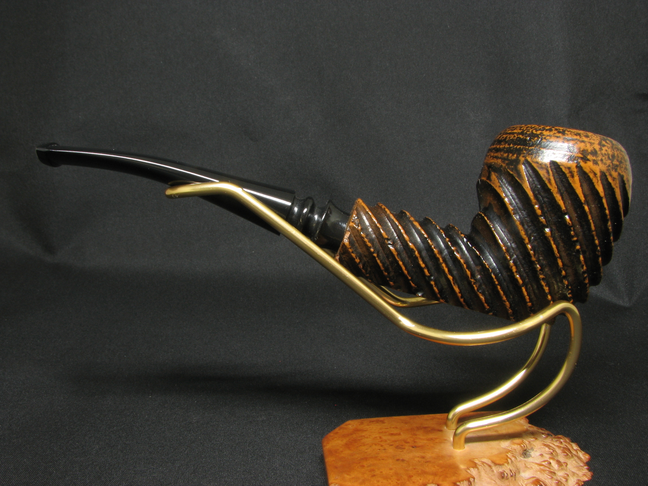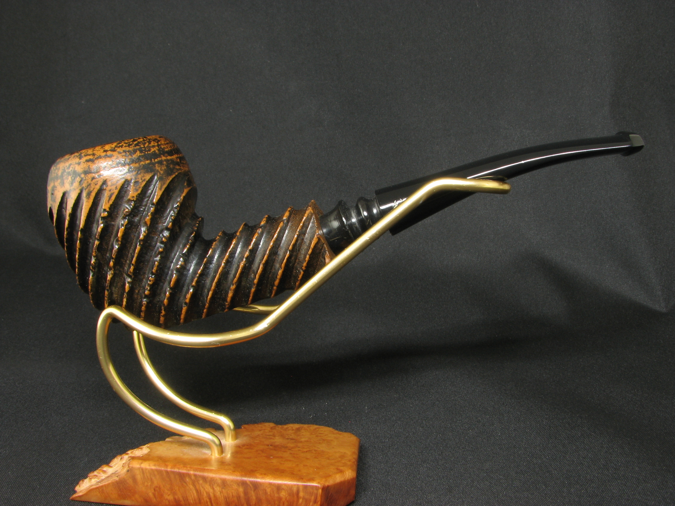 Gli artigiani americani di Kaywoodie hanno sempre deliziato i collezionisti con una generosa varietà di forme e finiture, a volte semplicemente piacevoli e funzionali, a volte estremamente azzeccate e ricercate. E, naturalmente, la nostra Ruf-Tone di oggi appartiene a queste più brillanti e di maggior successo: la finitura invecchiata artificialmente e a contrasto, combinata con una rusticatura profonda, è letteralmente ipnotizzante, e le forme accuratamente scelte creano l’illusione di un mostro degli abissi… o di una creatura proveniente dallo spazio profondo.