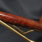 Очень интересная трубка высокого грейда от старейшей зарегистрированной британской трубочной торговой марки. Датировка изделий BBB обычно очень сложна, если вообще возможна, поэтому как правило трудно сказать, когда именно была изготовлена конкретная трубка. Но в данном случае отсутствие металлического логотипа на мундштуке внедрен в 1950-60-х годах), штампик «Hand Cut» на мундштуке и в особенности алюминиевая трубка (стингер) намекают, что трубка может быть намного старше, чем из 1950-х.
