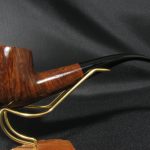 И маркировка “Made by hand” и необычный тяжеловесный шейп абсолютно типичны для “шаратановских” трубок “второй Лейновской” эры (1965 – середина 1970-х ориентировочно). Данному образцу было, вероятно, предопределено стать как минимум представительницей высшего среднего сегмента, но из-за нескольких царапин (или поверхностных трещинок?) судьба драматически развернулась и трубочка сохранилась до наших дней как непризнанное создание известнейшего производителя.