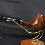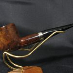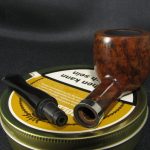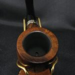 Маркировки на чаше “COMOY’S \ GRAND SLAM \ PATENT”, “MADE \ IN \ ENGLAND” (очень слабо различимо), “US PAT \ 2001612” уже трубно читается), “126B”, “*2”. Длина 14,2 см, высота чаши 4,1 см. Внешний диаметр чаши – 4,1 см, внутренний диаметр – 2,4 см, глубина – 3,4 см. Вес 39 гр. Бриар, эбонитовый мундштук, без фильтра. Трубка потребовала больше усилий и терпения, чем обычно: утраченный мундштук заменили на новый из свежего куска эбонита, отколовшуюся часть чубука зафиксировали и зажали никелевой манжетой для максимальной надежности, профиль камеры подправили(выглядит немного по центру).