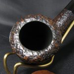 Маркировки “GEORG JENSEN \ made in Denmark PIPES \ Antik 7244”. Длина 13,5 см, высота чаши 4,8 см. Внешний диаметр чаши – 3,9 см, внутренний диаметр – 2,2 см, глубина – 4,3 см. Вес 47 гр. Бриар, эбонитовый мундштук, без фильтра.
