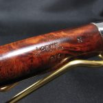Этот замечательный полный жизни ламбермен от Loewe & Co представляет собой в то же время весьма интересный и непростой эпизод в истории курительных трубок. Маркировка “London W.” свидетельствует, что трубка была сделана на семейной еще лондонской фабрике, располагавшейся на Haymarket Str. С другой же стороны маркировка на серебряном кольце обозначает London, 1991, т.е. уже после поглощения компании, происшедшего в 1976 г.
