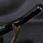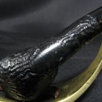 Маркировки “PETERSON’S \ KAPRUF”, “MADE IN \ IRELAND”. Длина 12,0 см, высота чаши 4,2 см. Внешний диаметр чаши – 3,0 см, внутренний диаметр – 1,7 см, глубина – 3,4 см. Вес 25 гр. Бриар, эбонитовый мундштук (чуть подкорректирован, при хорошем освещении видно), стингер. Табачная камера защищена искусственной карбонизацией.