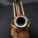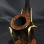Маркировки на чаше “DAN \ SHAPE- \ REFORMED”, “PIPE-DAN \ COPENHAGEN”, “43 \ 271”, “PIPE-DAN”. Длина 12,0 см, высота чаши 5,7 см. Внешний диаметр чаши – 3,1 см, внутренний диаметр – 1,7 см, глубина – 5,1 см. Вес 30 гр. Бриар, эбонитовый мундштук, без фильтра. В процессе реставрации пришлось залатать выбоинку на правой стороне чубука (под логотипом «PIPE-DAN \ COPENHAGEN»).