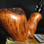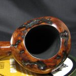 Маркировки “PREBEN HOLM \ FANCY \ CELEBRATION \ HAND MADE \ IN \ DENMARK”. Длина 14,5 см, высота чаши 5,8 см. Внешние размеры чаши – 4,7 х 5,0 см, внутренний диаметр – 2,3 см, глубина – 4,2 см. Вес 72 гр. Бриар, акриловый мундштук, без фильтра. Табачная камера защищена искусственной карбонизацией.