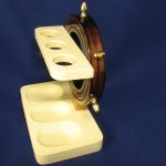 Ця унікальна англійська підставка на три люльки не має маркування виробника (зазвичай це була окрема металева пластина, прикріплена до дна), але любителі антикваріату легко впізнають її як виріб, виготовлений не пізніше 1950-х років компанією Tallent of Old Bond Street, Лондон. Виробник відомий своїми високоякісними дерев’яними виробами, такими як музичні шкатулки (деякі навіть із танцюючими балеринами), х’юмідори, коробки для сигар і підставки для трубок, творіння Tallent не сплутаєш ні з чим. Хоча сліди попереднього використання можна помітити під час ретельного огляду, ми дуже подбали про те, щоб оновити цей виріб, додавши сучасних відтінків, щоб новий власник міг повністю оцінити цю виняткову знахідку та насолодитися нею.