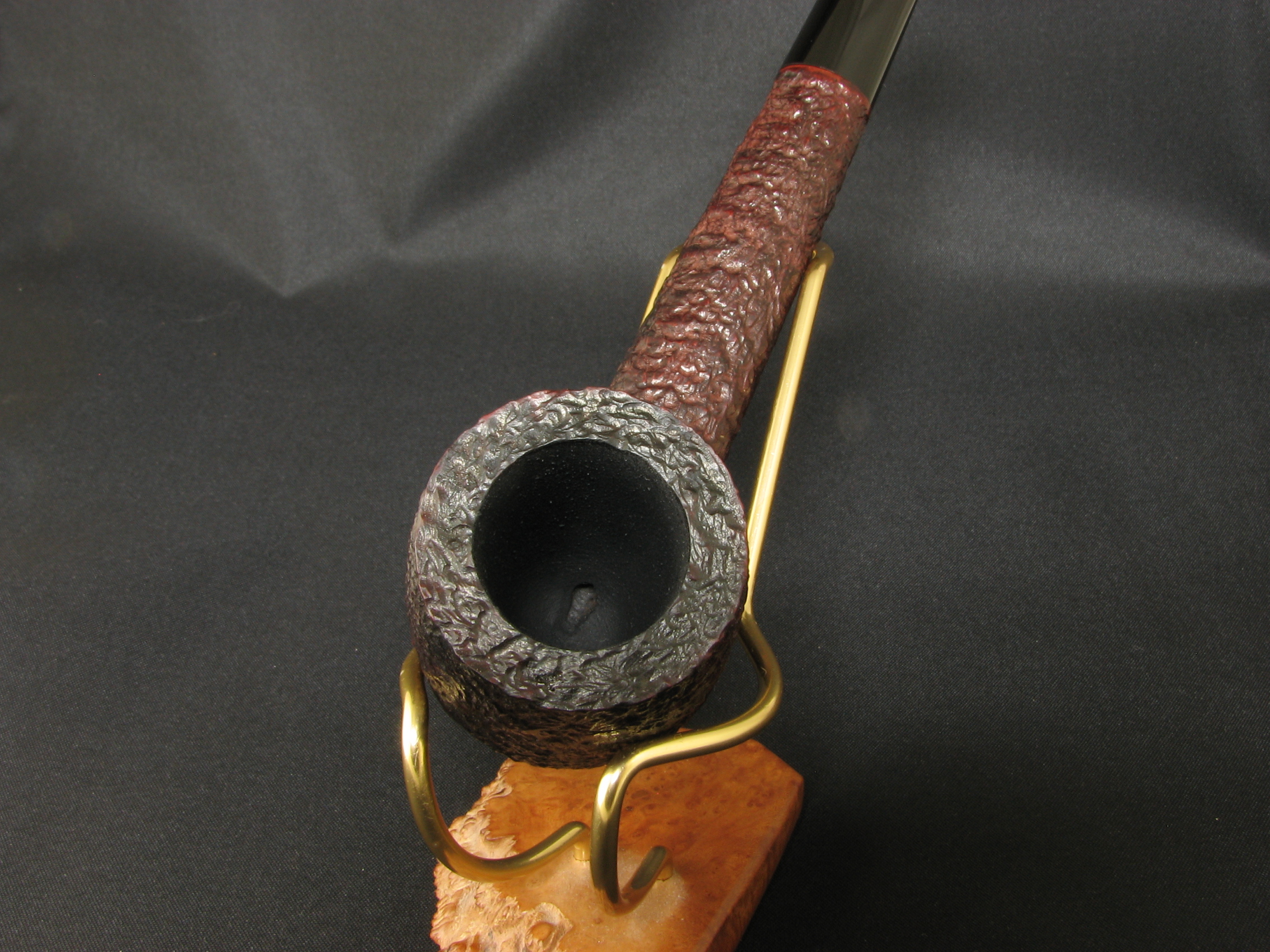 Тут ми бачимо точно те ж саме клеймо, виконане точно таким же шрифтом, що й на інших ранніх люльках Біла Ештона-Тейлора, вирізаних на початках його сольної кар’єри у ранніх 1980х. Цікаво, що у даному випадку люлька адаптована під 6-міліметровий фільтр, що доволі рідкісна опція для робіт Ештона-Тейлора. Можливо, люлька робилася на чиєсь замовлення.
